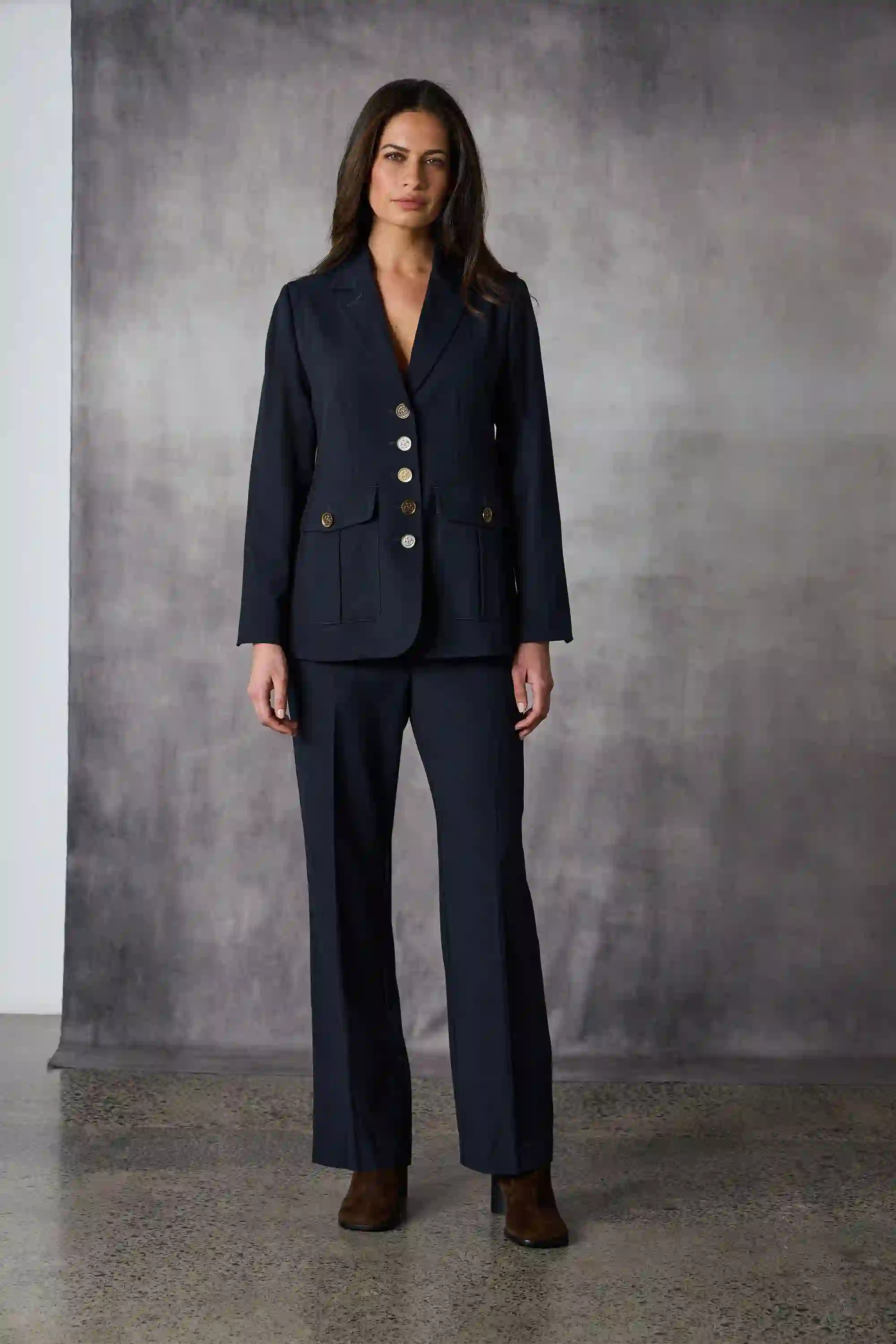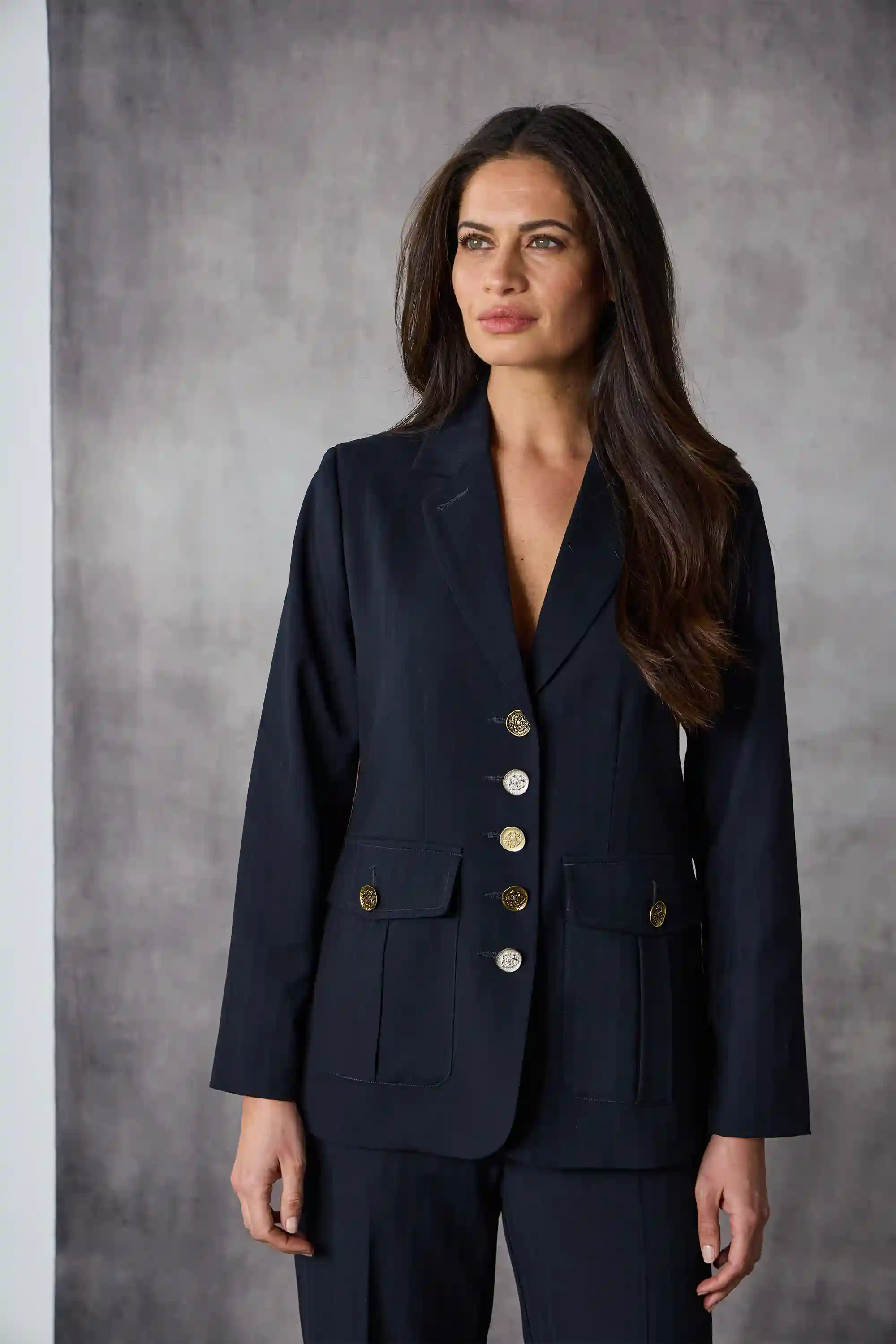 Introducing the Brigade Jacket, a sophisticated longlined blazer crafted from Wool blend fabrication. Its relaxed fit exudes effortless elegance, while the stripe tape down the side seam, mismatched buttons at the front closure and sleeve cuffs add a touch of modern flair. Fully lined for comfort and durability,this versatile piece pairs perfectly with matching trousers or elevates any outfit effortlessly.