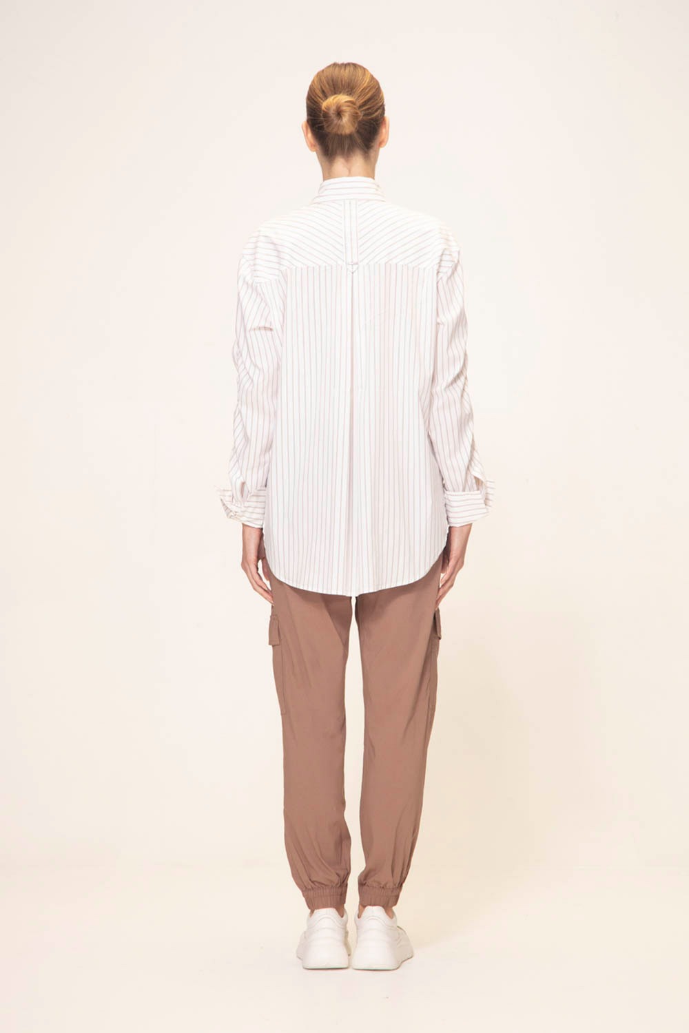 Cargo inspired Pant with tapered leg and elasticated cuff. Pockets at front, back and side leg. Fully elasticated pull on Pant in our exclusive European lightweight Acrobat fabric.