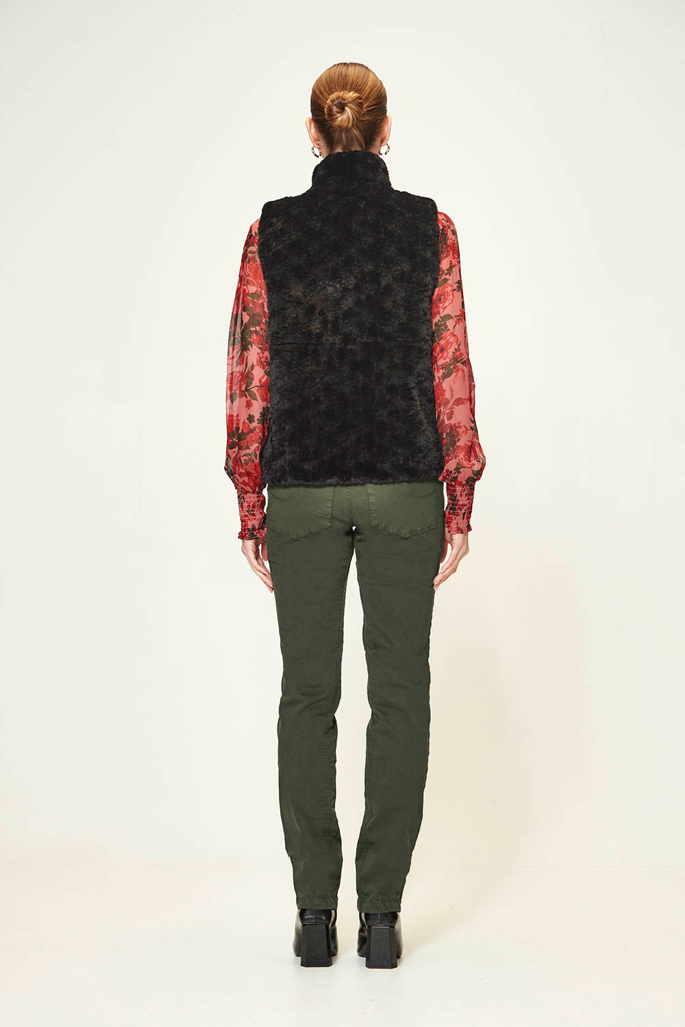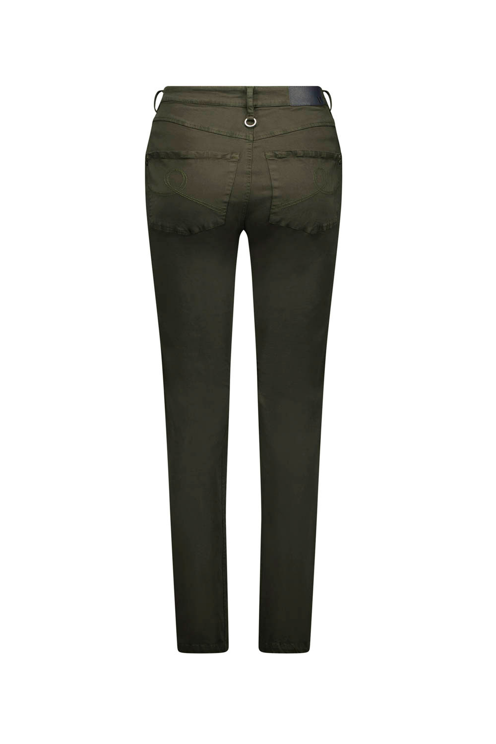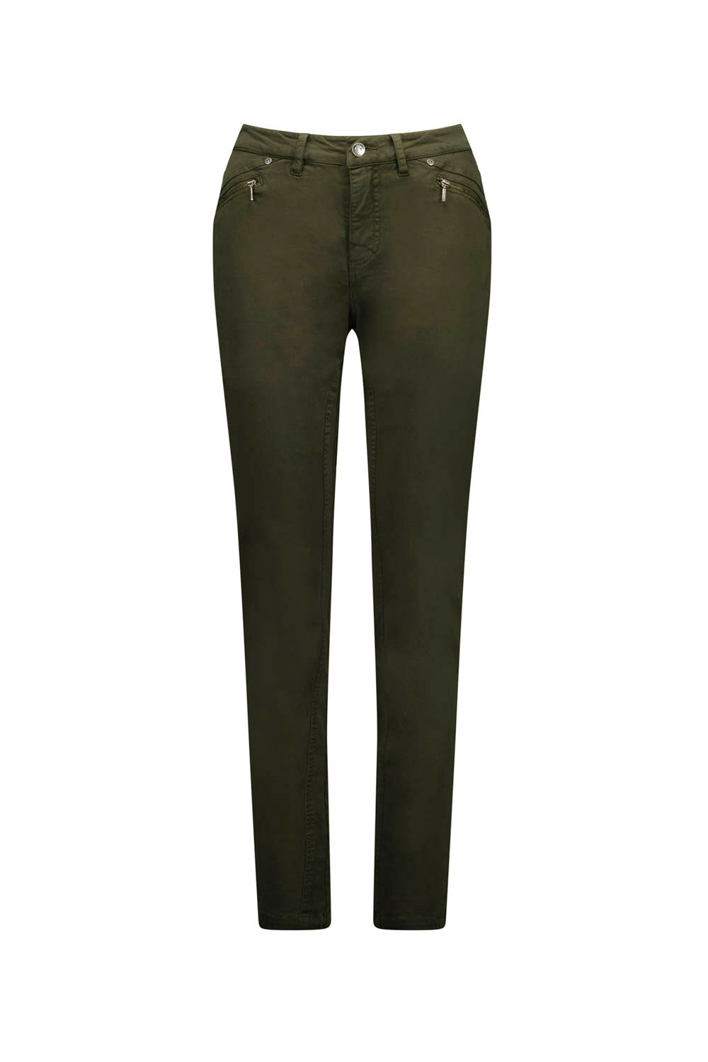 Coloured jean in stretch peached fabric. Full length slim moto style jeans with angled zip front pockets and inside panels on the legs.
