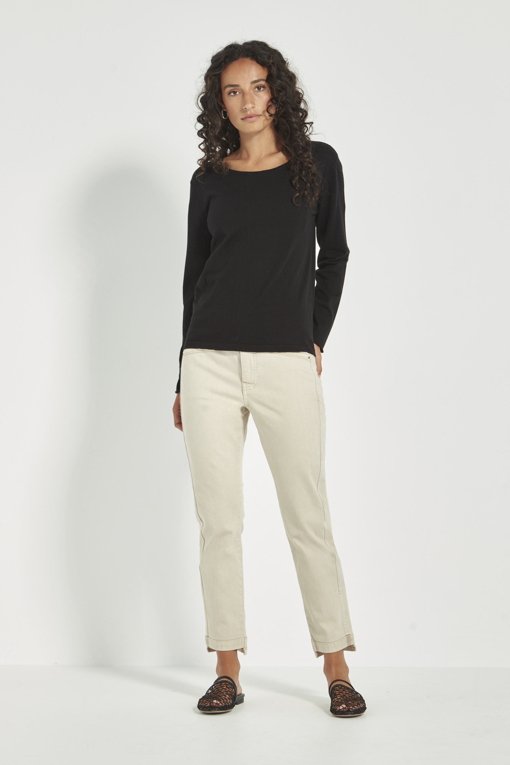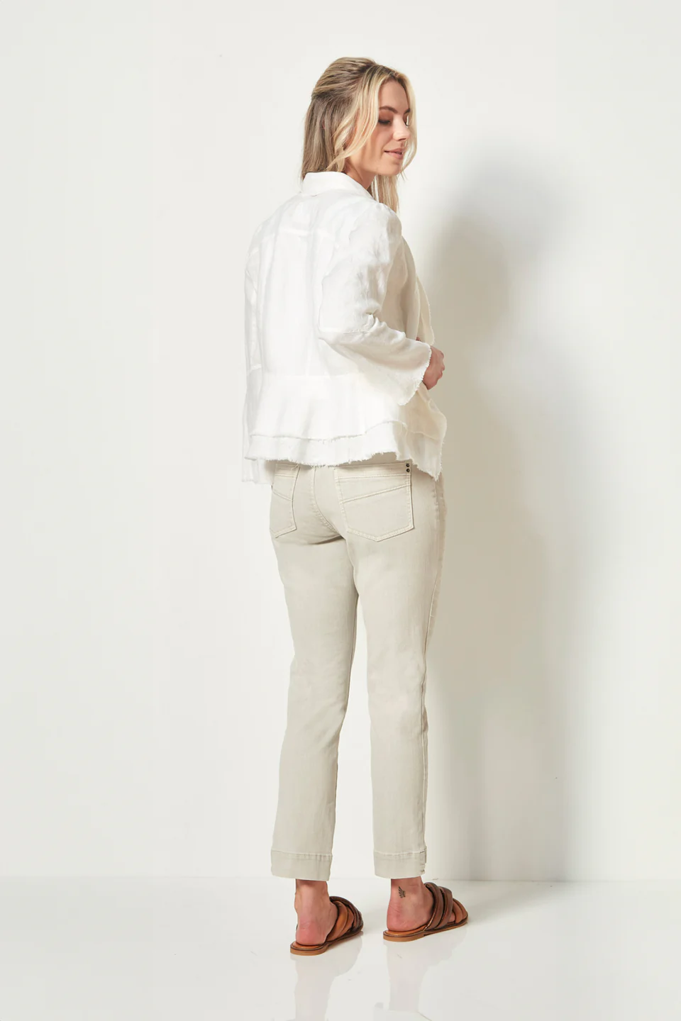Stop the press – Our Master of versatility – the Master Jean is your new must have for your wardrobe. Stepped hem with reverse denim detail at the front with a red tape detail. Zip Fly and Button Closure. Stepped Hem. 5 Pocket Jean with feature front pockets. Relaxed Slim Leg. 7/8 the Length. Made in our soft stretch denim for all day comfort.