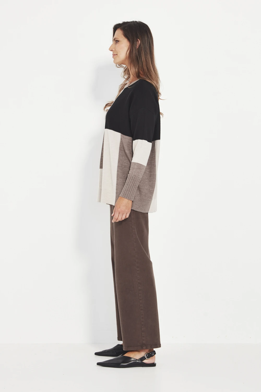 The Sloane Sweater blends relaxed comfort with a modern colour story. Designed with a classic crew neckline and a softly structured dropped shoulder, it offers a generous fit that drapes with ease.